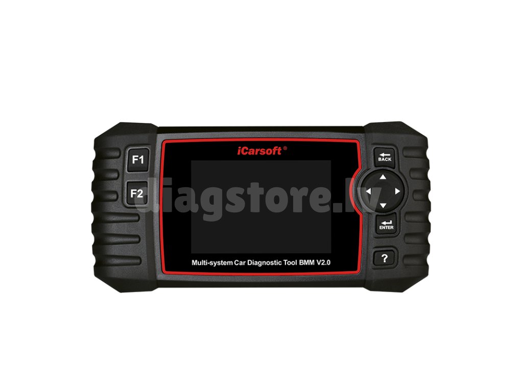 iCarsoft BMM V2.0 ir diagnostikas rīks, kas ļauj pieslēgties visiem BMW, Mini un Rolls Royce auto vadības blokiem. Ierīce ir aprīkota ar 4" krāsu ekrānu un ir gatava lietošanai. Ir ierīces programmatūras atjauninājumi ir pilnīgi bezmaksas un tiek veikti, izmantojot datoru (USB kabelis iekļauts komplektā). Ierīcei ir plašs atbalstīto valodu klāsts. Izstrādājumā tiek atbalstīti automobiļi no 1996. līdz 2016. gadam. iCarsoft skeneris ļauj detalizēti diagnosticēt visus agregātus, kā arī piedāvā 6 servisa funkcijas, piemēram, servisa intervālu atjaunošanu, DPF reģenerāciju, elektrisko stāvbremžu diagnostiku un atbrīvošanu, akumulatora reģistrāciju un daudz ko citu. ierīce tiek savienota ar automobili, izmantojot OBD-II kabeli.
