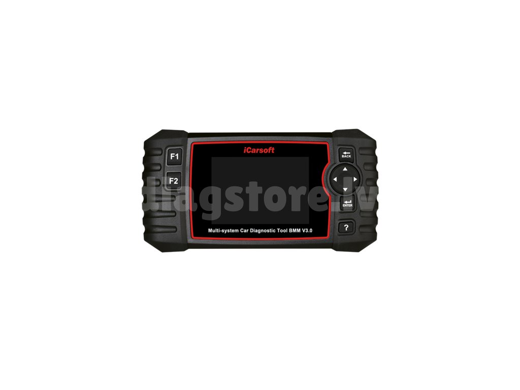 iCarsoft BMM V3.0 ir diagnostikas rīks, kas ļauj pieslēgties visām BMW, Mini un Rolls Royce automobiļu vadības ierīcēm. Ierīce ir aprīkota ar 4" krāsu ekrānu un ir gatava lietošanai. Ir ierīces programmatūras atjauninājumi ir pilnīgi bezmaksas un tiek veikti, izmantojot datoru (USB kabelis iekļauts komplektā). Ierīcei ir plašs atbalstāmo valodu klāsts. Patiek atbalstīti automobiļi no 1996. līdz 2020. gadam. Ierīce ļauj detalizēti diagnosticēt visus agregātus, kā arī piedāvā daudz servisa funkciju, piemēram, servisa intervālu atjaunošanu, DPF reģenerāciju, elektrisko stāvbremžu diagnostiku un atbrīvošanu, inžektoru kodēšanu, akumulatora reģistrēšanu un daudz ko citu. ierīce tiek savienota ar automobili, izmantojot OBD-II kabeli.