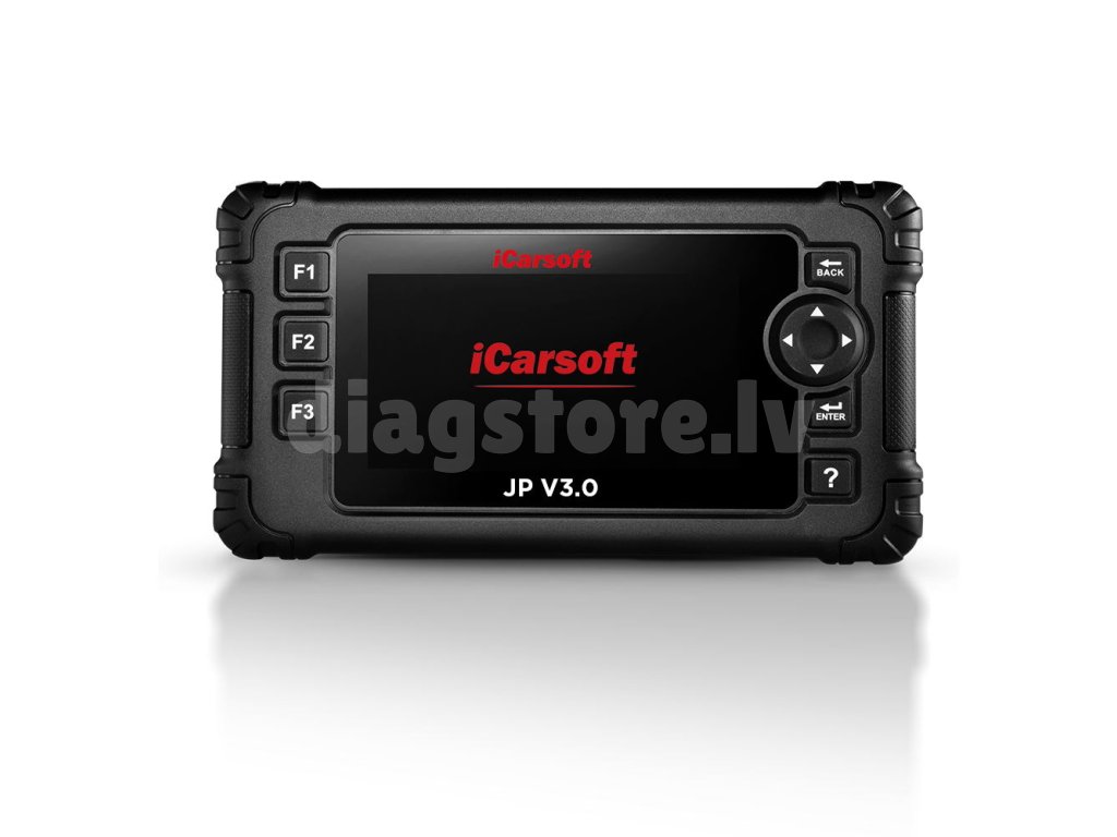 iCarsoft JP V3.0 ir diagnostikas rīks, kas ļauj pieslēgties visām Daewoo, Honda, Hyundai, Hyundai, Infinity, Isuzu, Kia, Lexus, Nissan, Mazda, Mitsubishi, Subaru un Toyota auto vadības ierīcēm. Ierīce ir aprīkota ar 4" krāsu ekrānu un ir gatava lietošanai. Ierīces programmatūras atjaunināšana ir pilnīgi bezmaksas un tiek veikta, izmantojot datoru (USB kabelis iekļauts komplektā). Ierīcei ir plašs atbalstīto valodu klāsts. Izstrādājumā ir atbalstīti automobiļi no 1996. līdz 2020. gadam. Ierīce ļauj detalizēti diagnosticēt visus agregātus, kā arī piedāvā daudz servisa funkciju, piemēram, servisa intervālu atjaunošanu, DPF reģenerāciju, elektrisko stāvbremžu diagnostiku un atbrīvošanu, inžektoru kodēšanu, akumulatora reģistrāciju un daudz ko citu. Ir ierīci pieslēdz pie automobiļa, izmantojot OBD-II kabeli.