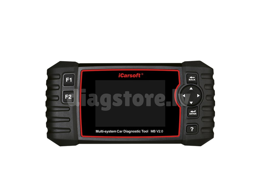 iCarsoft MB V2.0 ir diagnostikas rīks, kas ļauj pieslēgties visām Mercedes un Maybach auto vadības ierīcēm. Ierīce ir aprīkota ar 4" krāsu ekrānu un ir gatava lietošanai. Ir ierīces programmatūras atjauninājumi ir pilnīgi bezmaksas un tiek veikti, izmantojot datoru (USB kabelis iekļauts komplektā). Ierīcei ir plašs atbalstīto valodu klāsts. Izstrādājumā tiek atbalstīti automobiļi no 1996. līdz 2016. gadam. iCarsoft skeneris ļauj detalizēti diagnosticēt visus agregātus, kā arī piedāvā 6 servisa funkcijas, piemēram, servisa intervālu atjaunošanu, DPF reģenerāciju, elektrisko stāvbremžu diagnostiku un atbrīvošanu, akumulatora reģistrāciju un daudz ko citu. ierīce tiek savienota ar automobili, izmantojot OBD-II kabeli.