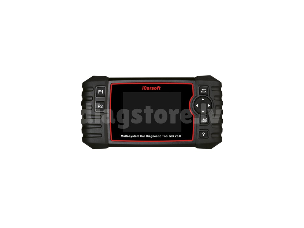 iCarsoft MB V3.0 ir diagnostikas rīks, kas ļauj pieslēgties visiem Mercedes, Smart un Maybach auto vadības blokiem. Ierīce ir aprīkota ar 4" krāsu ekrānu un ir gatava lietošanai. Ir ierīces programmatūras atjauninājumi ir pilnīgi bezmaksas un tiek veikti, izmantojot datoru (USB kabelis iekļauts komplektā). Ierīcei ir plašs atbalstīto valodu klāsts. Izstrādājumā ir atbalstīti automobiļi no 1996. līdz 2020. gadam. Ierīce ļauj detalizēti diagnosticēt visus agregātus, kā arī piedāvā daudz servisa funkciju, piemēram, servisa intervālu atjaunošanu, DPF reģenerāciju, elektrisko stāvbremžu diagnostiku un atbrīvošanu, inžektoru kodēšanu, akumulatora reģistrāciju un daudz ko citu. Ir ierīci pieslēdz pie automobiļa, izmantojot OBD-II kabeli.