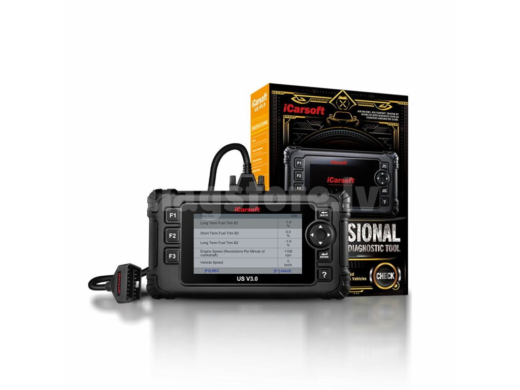 iCarsoft US V3.0 ir diagnostikas rīks, kas ļauj pieslēgties visām Chrysler, Ford, General Motors, Holden un Jeep auto vadības ierīcēm. Ierīce ir aprīkota ar 4" krāsu ekrānu un ir gatava lietošanai. Ir ierīces programmatūras atjauninājumi ir pilnīgi bezmaksas un tiek veikti, izmantojot datoru (USB kabelis iekļauts komplektā). Ierīcei ir plašs atbalstīto valodu klāsts. Izstrādājumā ir atbalstīti automobiļi no 1996. līdz 2020. gadam. Ierīce ļauj detalizēti diagnosticēt visus agregātus, kā arī piedāvā daudz servisa funkciju, piemēram, servisa intervālu atjaunošanu, DPF reģenerāciju, elektrisko stāvbremžu diagnostiku un atbrīvošanu, inžektoru kodēšanu, akumulatora reģistrāciju un daudz ko citu. Ir ierīci pieslēdz pie automobiļa, izmantojot OBD-II kabeli.