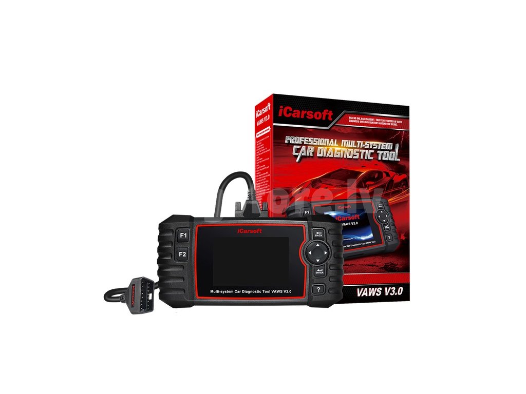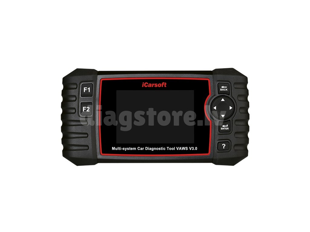 iCarsoft VAWS V3.0 ir diagnostikas rīks, kas ļauj pieslēgties visām Volkswagen, Audi, Seat, Cupra un Skoda automobiļu vadības ierīcēm. Ierīce ir aprīkota ar 4" krāsu ekrānu un ir gatava lietošanai. Ierīces programmatūras atjaunināšana ir pilnīgi bezmaksas un tiek veikta, izmantojot datoru (USB kabelis iekļauts komplektā). Ierīcei ir plašs atbalstāmo valodu klāsts. Patiek atbalstīti automobiļi no 1996. līdz 2020. gadam. Ierīce ļauj detalizēti diagnosticēt visus agregātus, kā arī piedāvā daudz servisa funkciju, piemēram, servisa intervālu atjaunošanu, DPF reģenerāciju, elektrisko stāvbremžu diagnostiku un atbrīvošanu, inžektoru kodēšanu, akumulatora reģistrēšanu un daudz ko citu. ierīce tiek savienota ar automobili, izmantojot OBD-II kabeli.