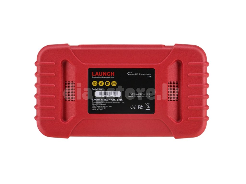 Launch CRP123X V2.0 ļauj diagnosticēt visus automobiļu zīmolus. Diagnostikas ierīce var savienoties ar 4 galvenajām vienībām (motoru, ABS, gaisa spilveniem un automātisko pārnesumkārbu), tā var nolasīt un dzēst kļūdu ziņojumus, kā arī parādīt reāllaika datus. Pateicoties VIN koda noteikšanai, automobiļa izvēle notiek automātiski. Ierīcei ir 5 collu skārienjūtīgais displejs, bet tā ir aprīkota arī ar klasiskajām pogām. Operētājsistēma Android nodrošina vienmērīgu un ātru darbību. Pateicoties savai baterijai, ierīce neizslēdzas pat pēc atvienošanas no transportlīdzekļa.