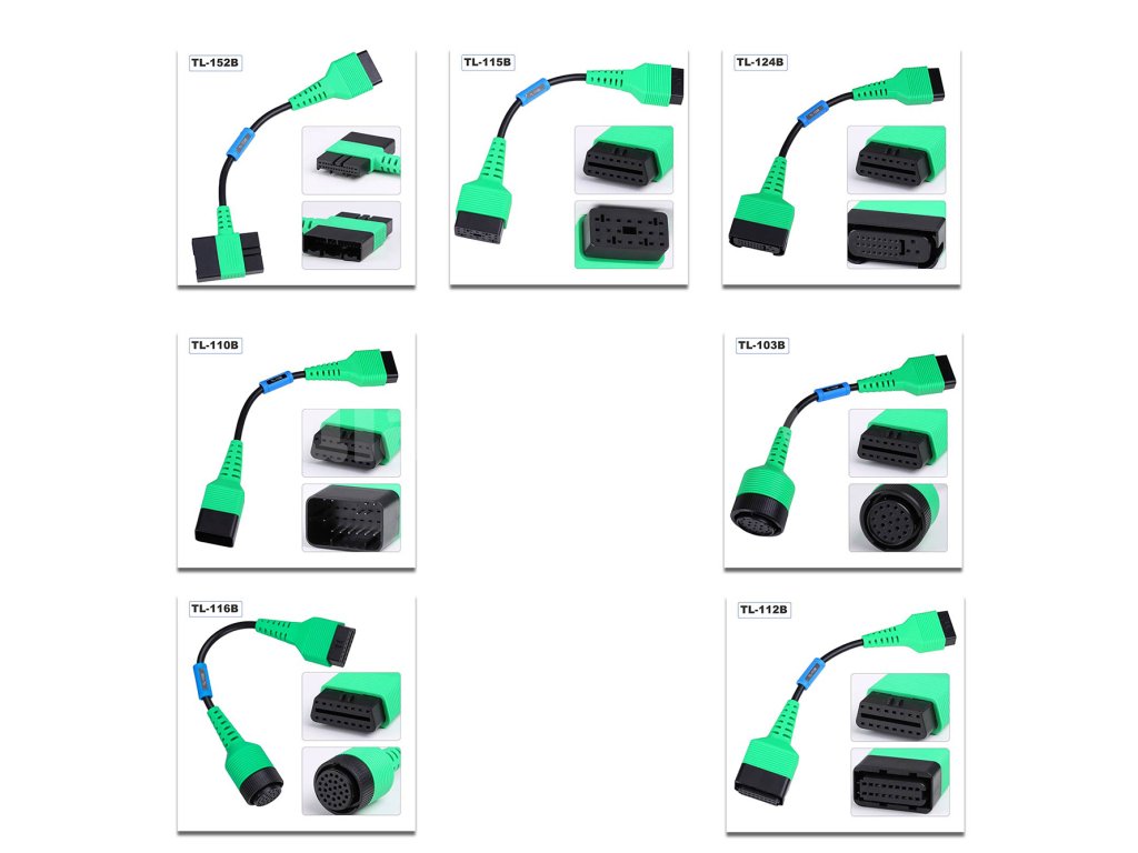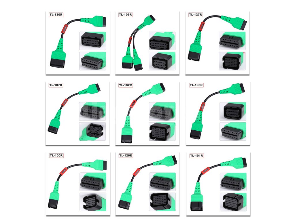 Paplašināšanas komplekts adapteru komplekts elektrisko transportlīdzekļu diagnostikai Tesla, BYD un citiem elektriskajiem automobiļiem, ieskaitot programmatūras paplašinājumu. Ļauj pārbaudīt atsevišķus akumulatora elementus, parādīt uzlādes stāvokli un akumulatora stāvokli.