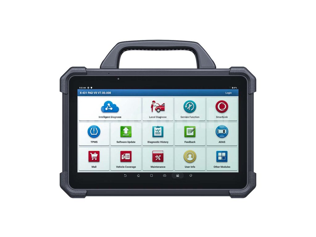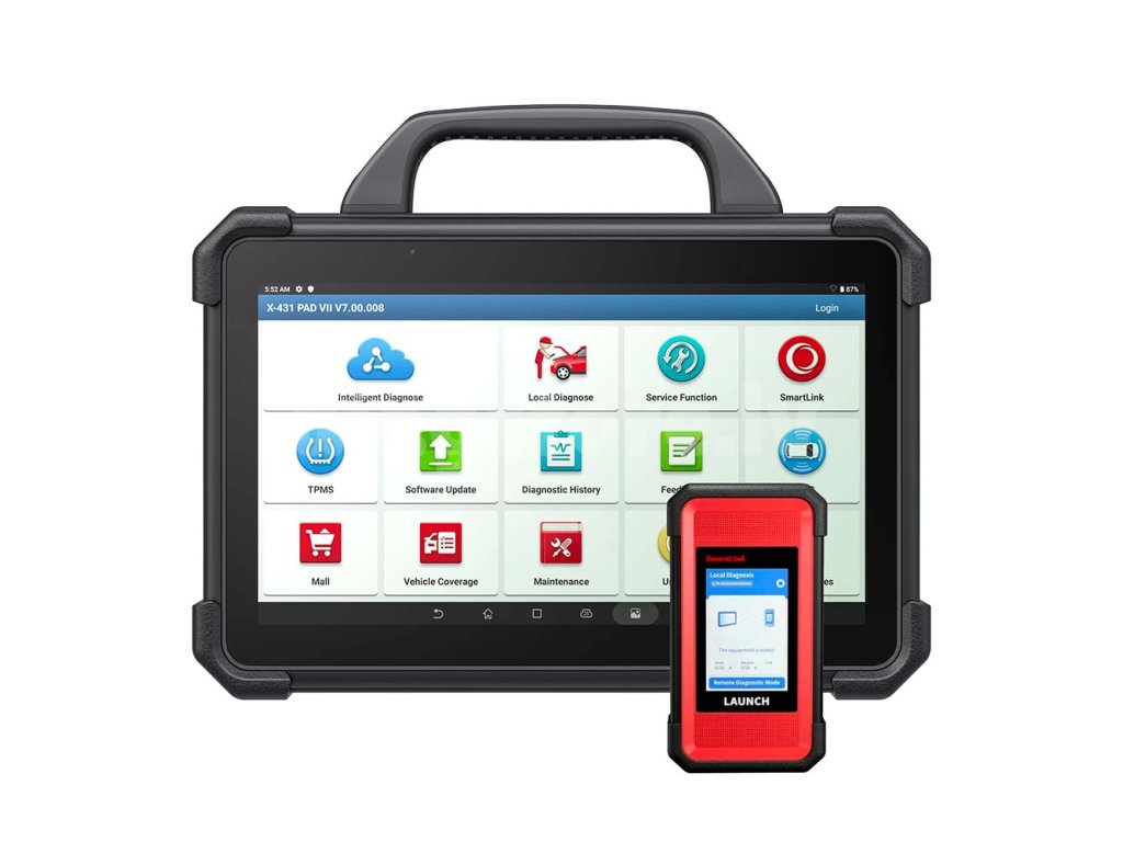 Launch X431 PAD VII ir Launch flagmanis un piedāvā lielāko daļu funkciju no visiem Launch produktiem. Tas piedāvā savienojumu ar visiem blokiem lielākajā daļā Eiropas, Āzijas un Amerikas transportlīdzekļu kopā ar uzlabotām servisa funkcijām. Tas savienojas ar visiem blokiem, spēj nolasīt gatavības kodu, kā arī piedāvā vairāk nekā 60 servisa funkciju - tas spēj atiestatīt servisa intervālus, diagnosticēt un reģenerēt DPF, veikt droseļvārsta pamata iestatījumus, atiestatīt automātiskās transmisijas pielāgojumus, veikt TPMS diagnostikas pamatfunkcijas, reģistrēt akumulatoru, veikt inžektoru kodēšanu, atslēgas un tālvadības pults kodēšanu un daudz ko citu.