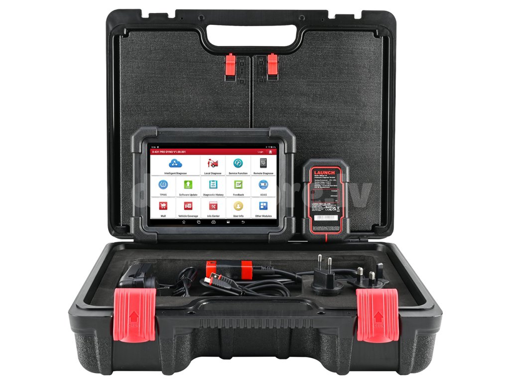 Launch X431 PRO DYNO piedāvā diagnostiku visiem agregātiem lielākajā daļā Eiropas, Āzijas un Amerikas transportlīdzekļu kopā ar uzlabotām servisa funkcijām. Tas savienojas ar visiem blokiem, spēj nolasīt gatavības kodu, kā arī piedāvā vairāk nekā 37 servisa funkcijas - ar to var atjaunot servisa intervālus, diagnosticēt un reģenerēt DPF, veikt droseļvārsta pamata iestatījumus, atjaunot automātiskās transmisijas pielāgojumus, veikt TPMS diagnostikas pamatfunkcijas, reģistrēt akumulatoru, veikt inžektoru kodēšanu, atslēgas un tālvadības pults kodēšanu un daudz ko citu. Instruments atbalsta aktīvus testus, pielāgojumus un kodēšanu. Tas neaprobežojas tikai ar diagnostiku OBD-II standarta ietvaros, bet var veikt arī pilnīgu diagnostiku vecākiem OBD-I transportlīdzekļiem.