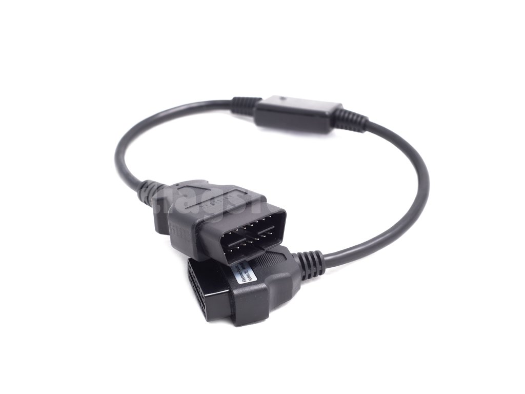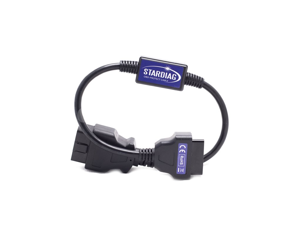 Augstas kvalitātes kabelis ar OBD-II aizsardzību pret pārspriegumiem. Aizsardzība tiek savienota starp transportlīdzekļa diagnostikas ligzdu un diagnostikas ierīci. Tā aizsargā transportlīdzekļa diagnostikas un elektronikas ierīces no pārsprieguma.