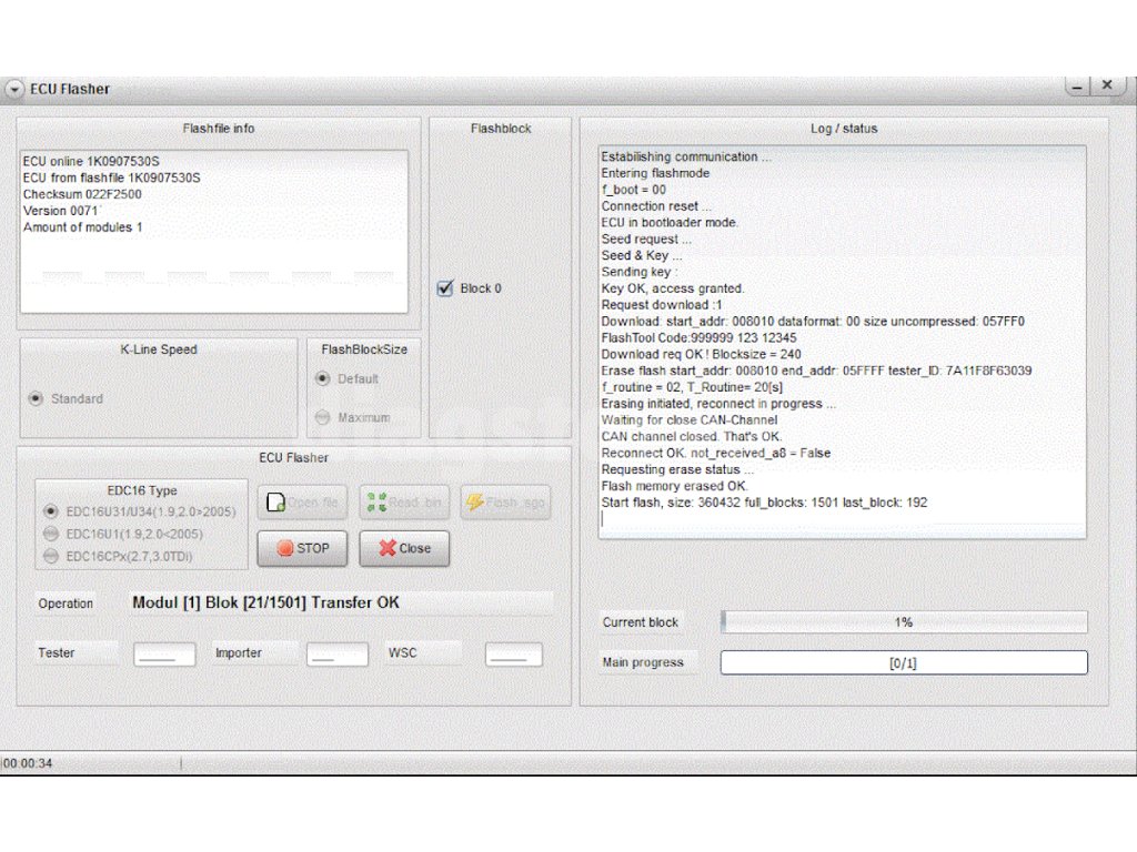 - ECU Flash - vadības bloka programmaparatūras atjaunināšana